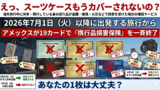 「えっ、スーツケースもうカバーされないの?」2026年7月1日、アメックスが19カードで”携行品損害保険”を一斉終了…あなたの1枚は大丈夫?